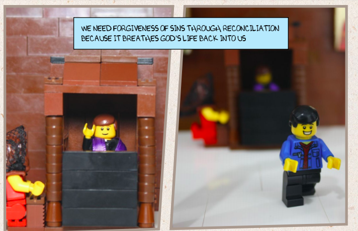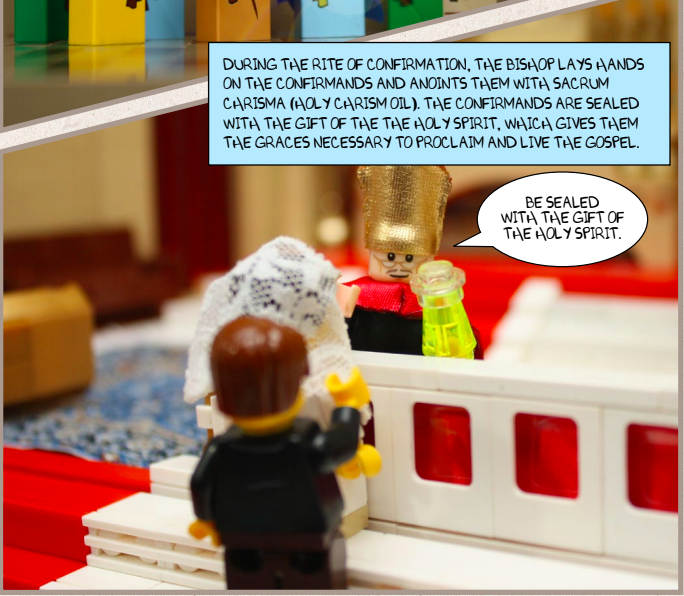 The Catechism of the Seven Sacraments takes fear out of the equation. The use of Legos, a familiar item, makes the heavier topics much less intimidating.
