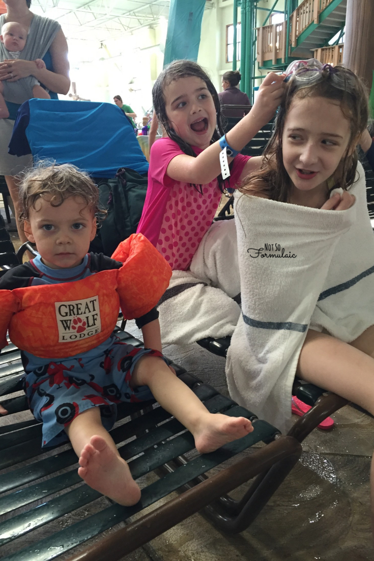 We had packed our swim gear separately from our luggage, planning to check in, hang at the water park for a few hours, then head up to our room for showers and dinner prep.