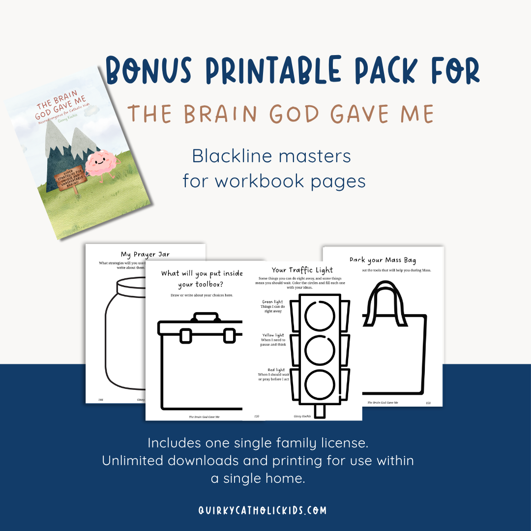 Simple and convenient: this printable pack provides black line masters for the following pages in The Brain God Gave Me: Neurodivergence for Catholic Kids