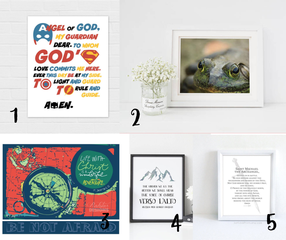 Want an inspirational quote for you son’s room? Look no further than Lindsey at Just Love Prints – your go-to shop for Catholic artwork and gifts.