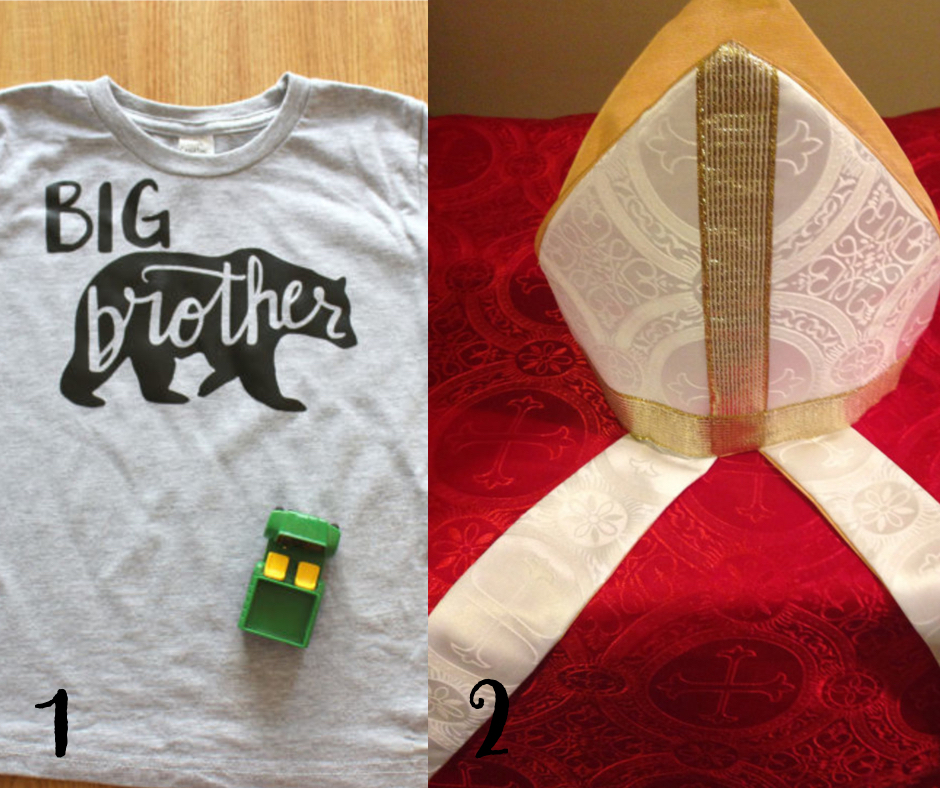 The talented seamstress behind VestmentsforJuniors is a wife and mother of four children, three of whom are boys. Inspired by her sons’ love of imitating Father at mass, Aimee tried her hand at making chasubles and other vestments. Looks like it was a success to me! Aimee enjoys making custom orders, so be sure to contact her if you have something in mind.