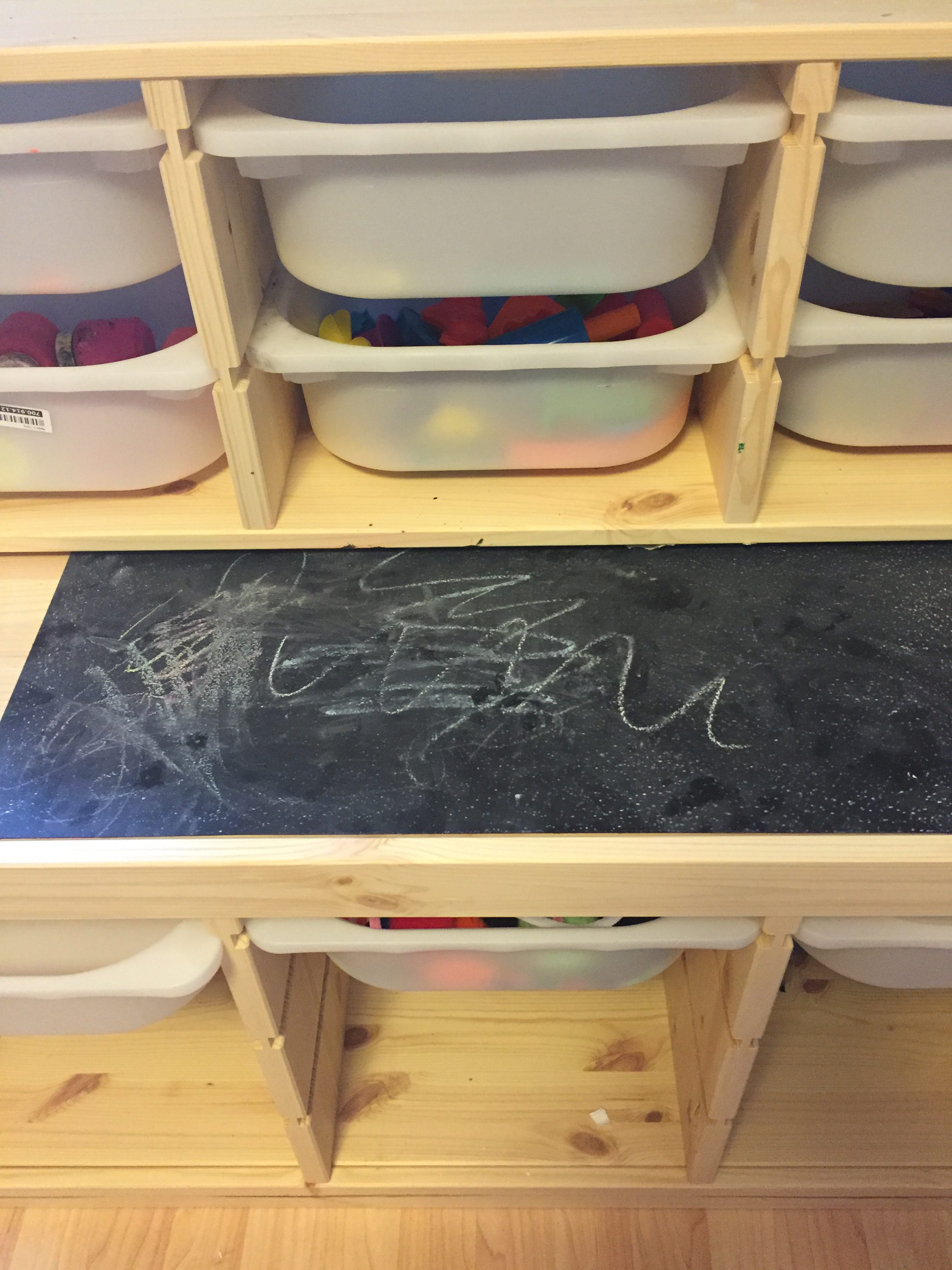 Yes, the Swedish icon of style and quasi DIY spirit. We have two Trofast storage systems in the girls’ rooms. I love their simplicity and workhorse attitude. It occurred to me – why not get a third and hack it? Make it a discovery station for the little guy?