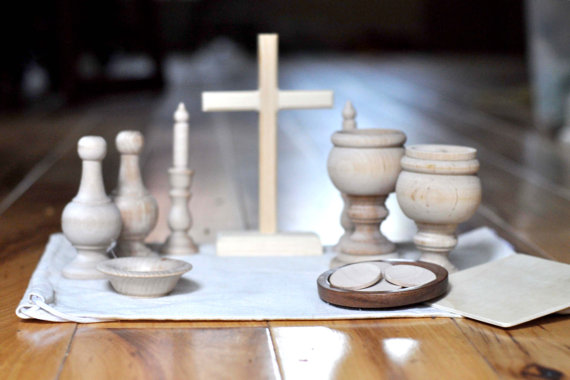 Wooden Mass Kit and Saint Blocks from Almond Rod Toys